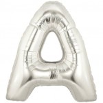 Hopeiset kirjainfoliopallot, korkeus 100 cm. Kirjaimet saatavissa A – Z.